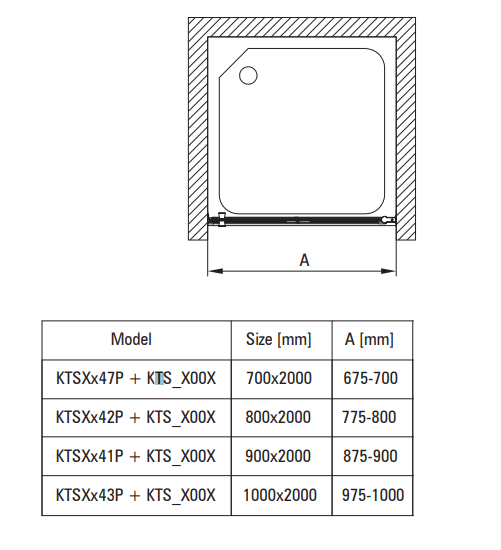 - Montaż: do kompletowania z drzwiami prysznicowymi KTS, do kompletowania z walk-in KTS