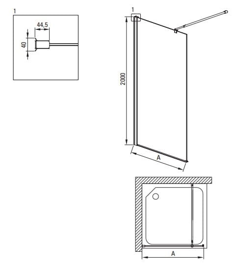 - Montaż: do kompletowania z walk-in KTS, do kompletowania z drzwiami prysznicowymi KTS, możliwość Montaż: u z ruchomym panelem KTS,