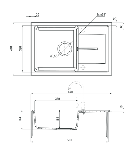 Powierzchnia granitowych zlewozmywaków Deante odpycha cząsteczki wody, dzięki czemu płyny - takie jak soki, herbata czy kawa - szybko spływają nie zostawiając śladów. To trwała cecha materiału, w odróżnieniu od powłok stosowanych przez inne firmy nie ściera się i nie wymaga uzupełniania.