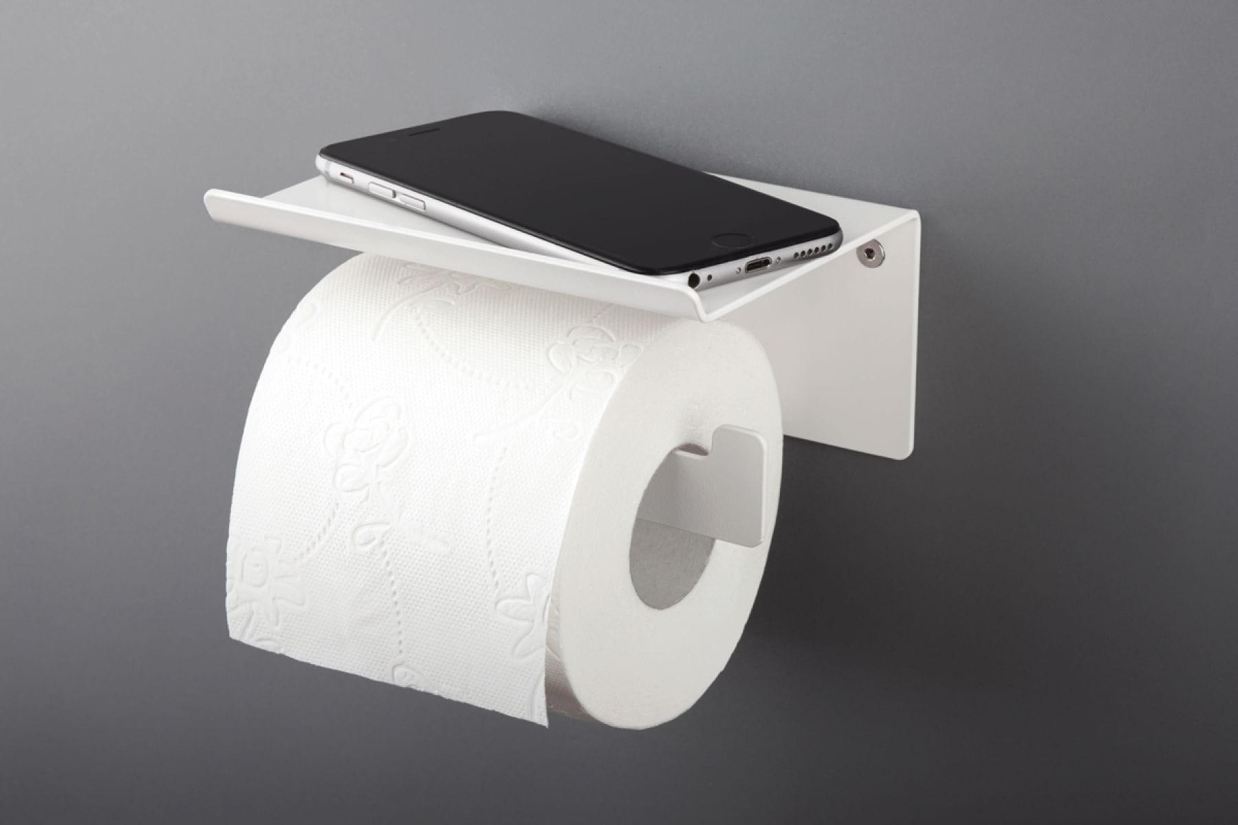 Uchwyt na papier toaletowy z półką, Deante Mokko, czarny, ADM_N221