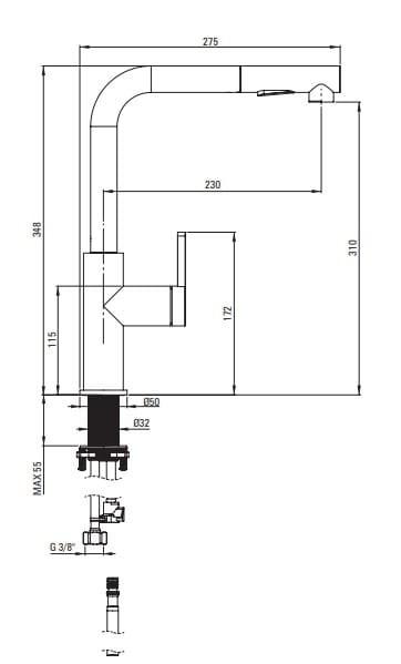 Deante Momi bateria kuchenna z wyciąganą wylewką, kolor czarny mat (Nero) BKM_N73M