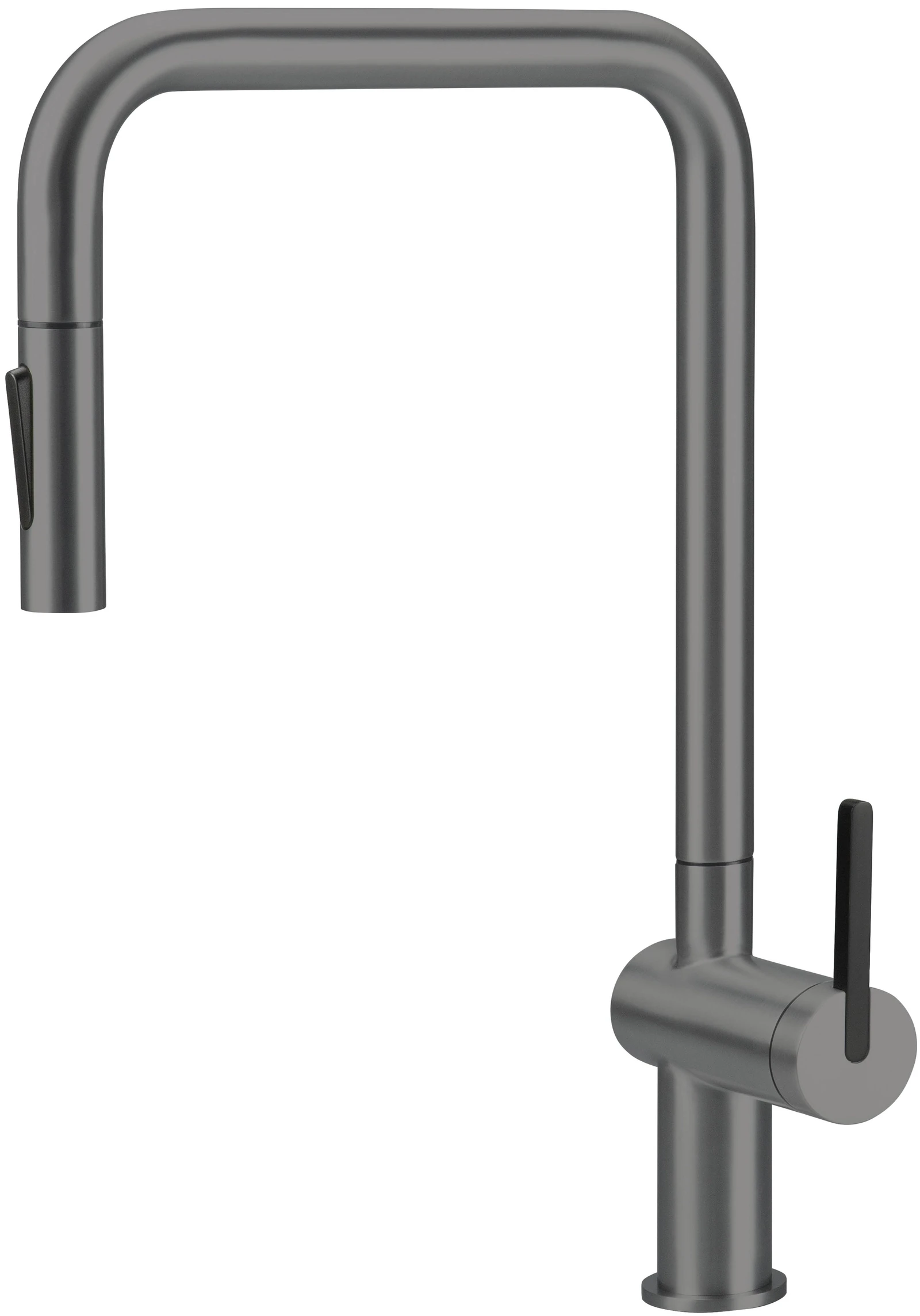 Deante Momi bateria kuchenna z wyciąganą wylewką, kolor grafit szczotkowany (Titanium) BKM_D73N