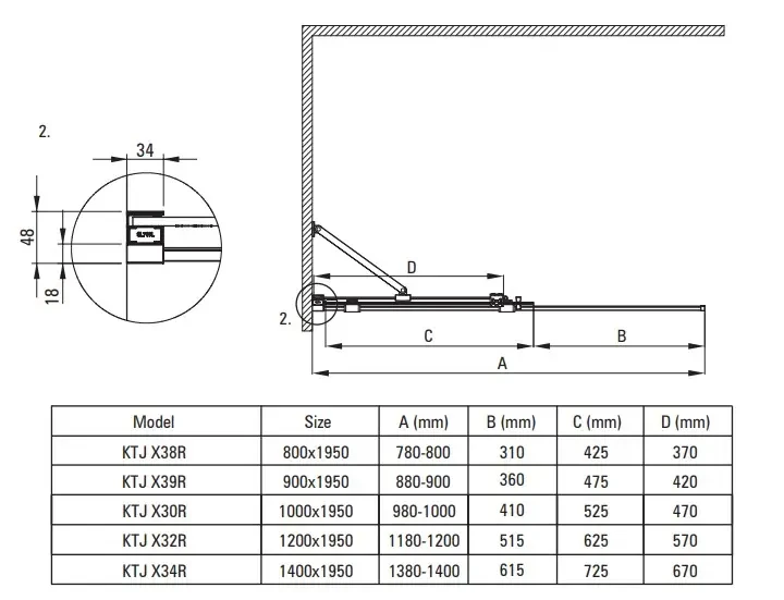 Kabina walk-in przesuwny Deante Prizma KTJ_A38R – cechy produktu: