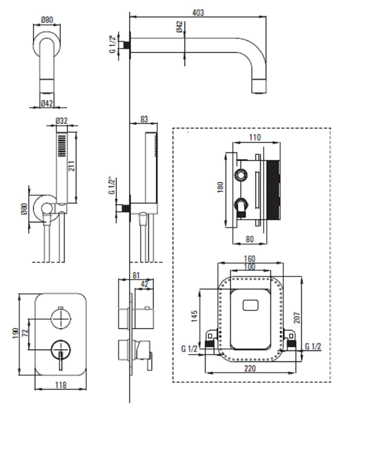 Deante zestaw natryskowy Silia BXYZAQSM biały-mat- dane techniczne: