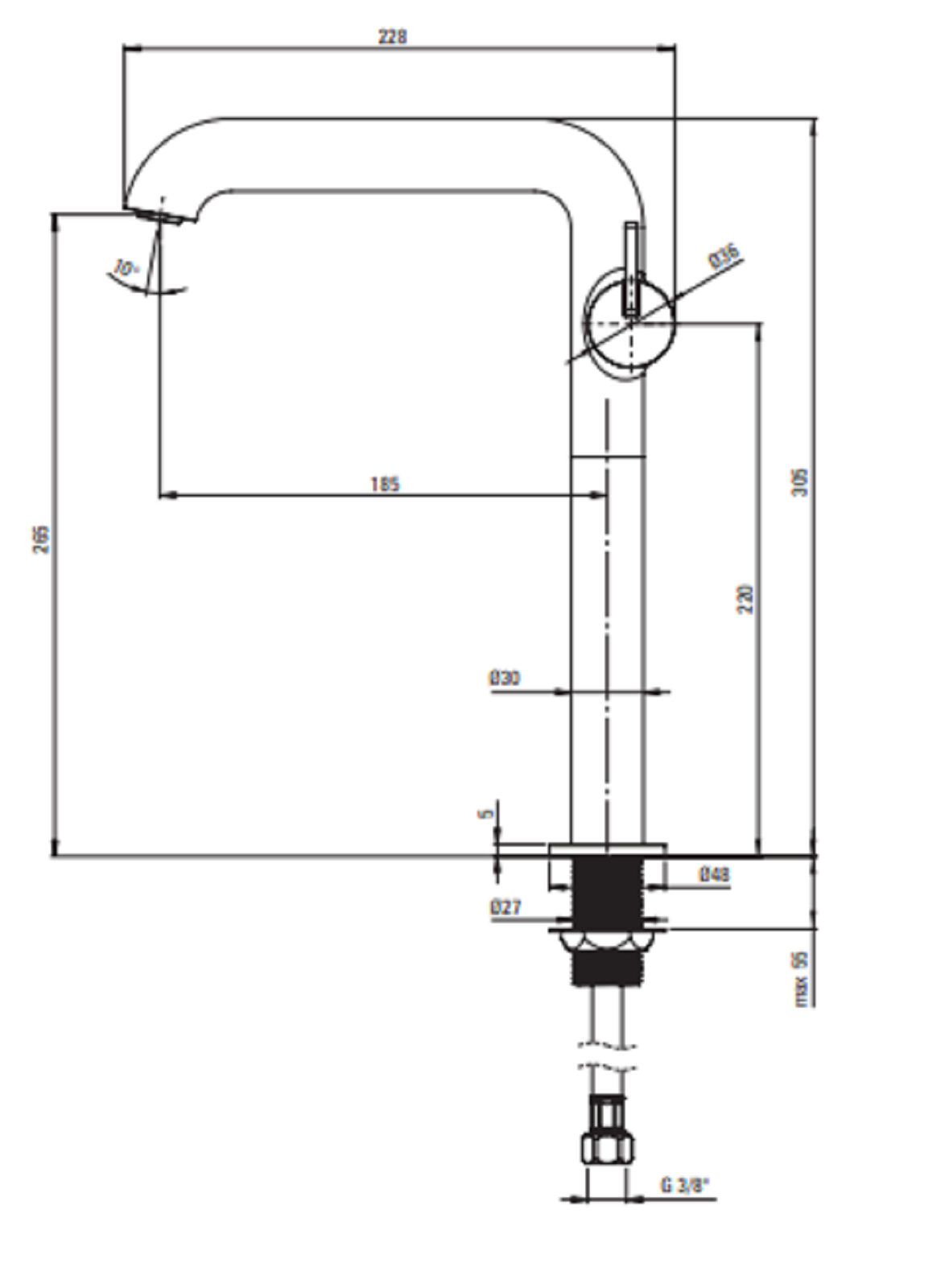 Bateria umywalkowa Deante Silia biały-mat BQS_A24K - wymiary