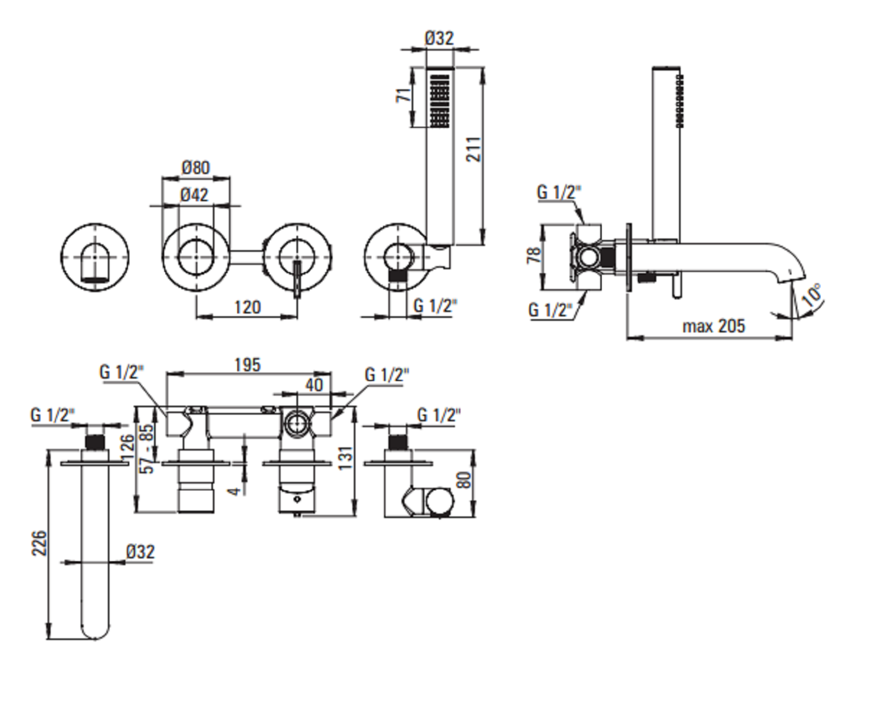 - montaż ścienny podtynkowy,