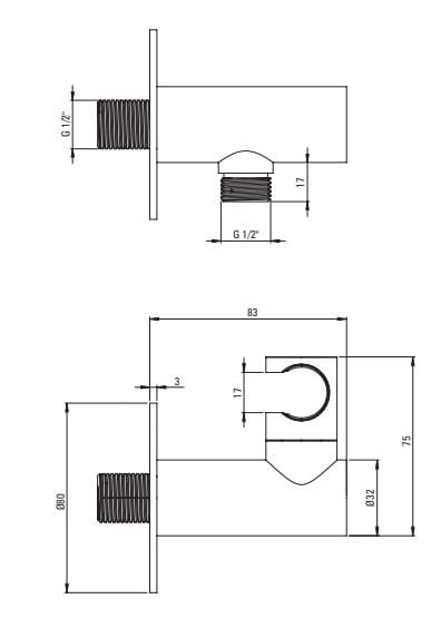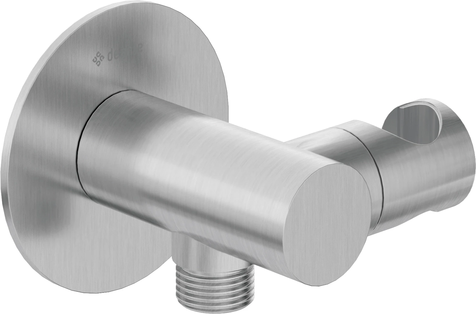 Deante Silia przyłącze kątowe okrągłe z uchwytem na słuchawkę, kolor stal szczotkowana NQS_F57K