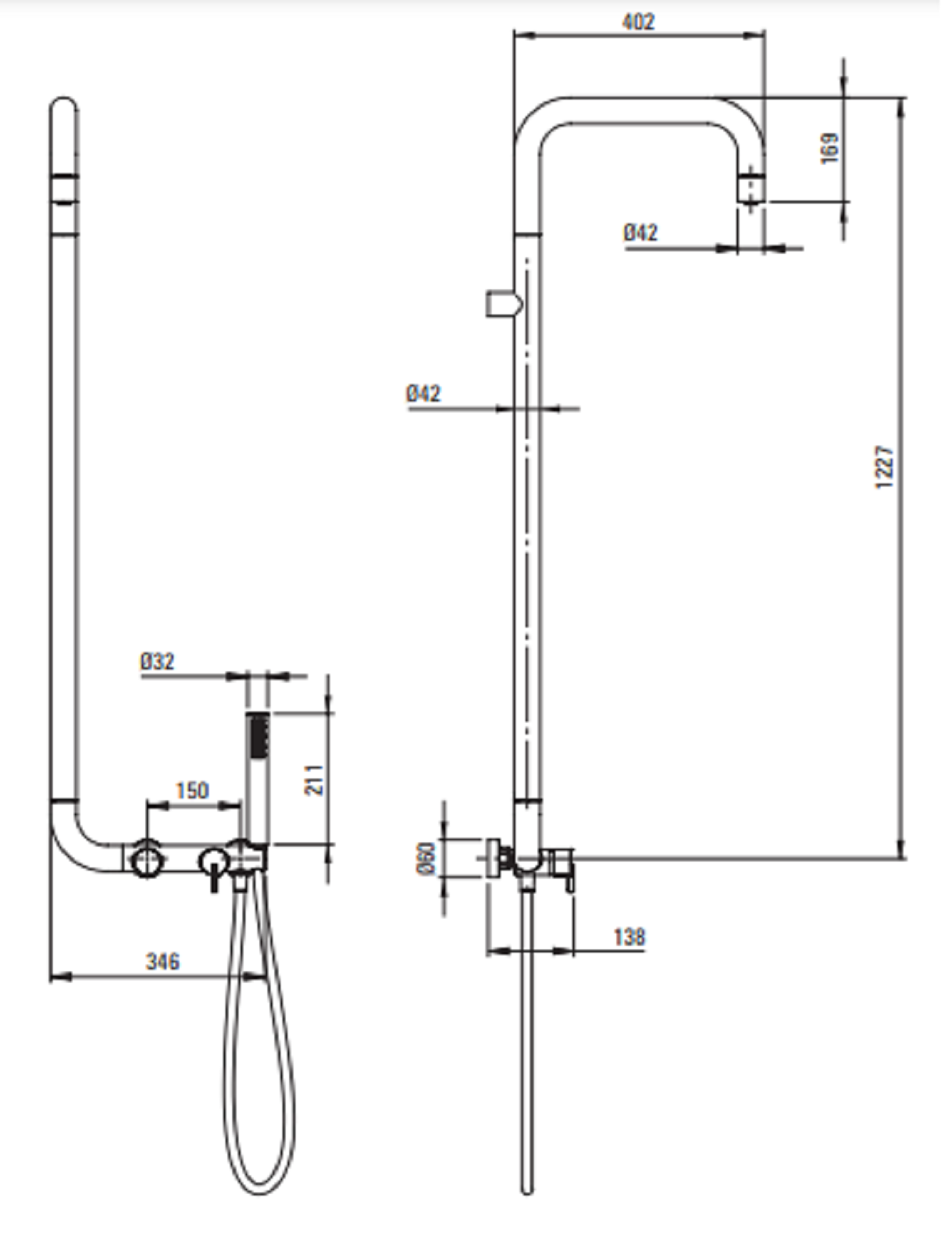Zestaw natryskowy Deante Silia NQS_D4XM - wymiary: