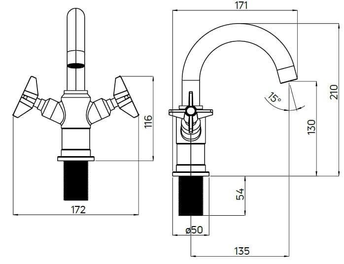Bateria umywalkowa Deante Temisto - dane techniczne