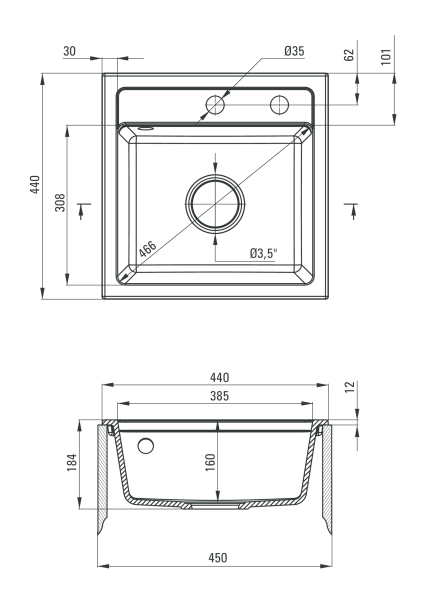 Deante Zorba Zlewozmywak 1-komorowy bez ociekacza - grafitowy, ZQZ_2103