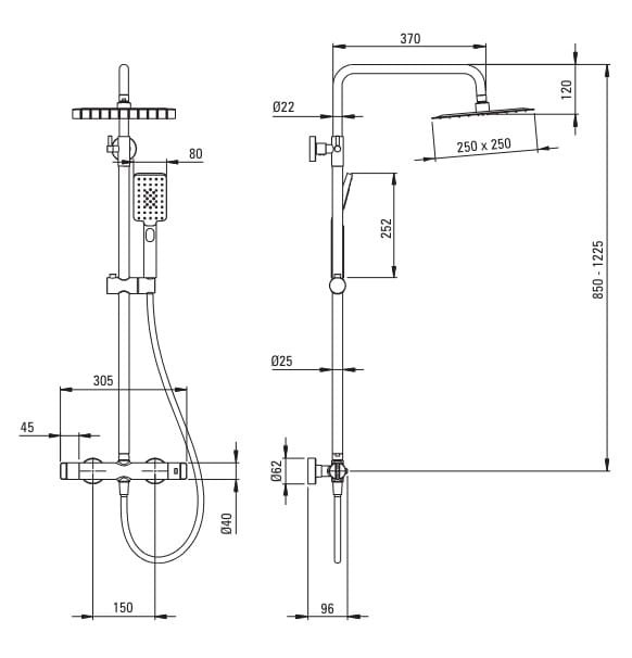 - przełącznik deszczownica/rączka natryskowa: mechaniczny,
