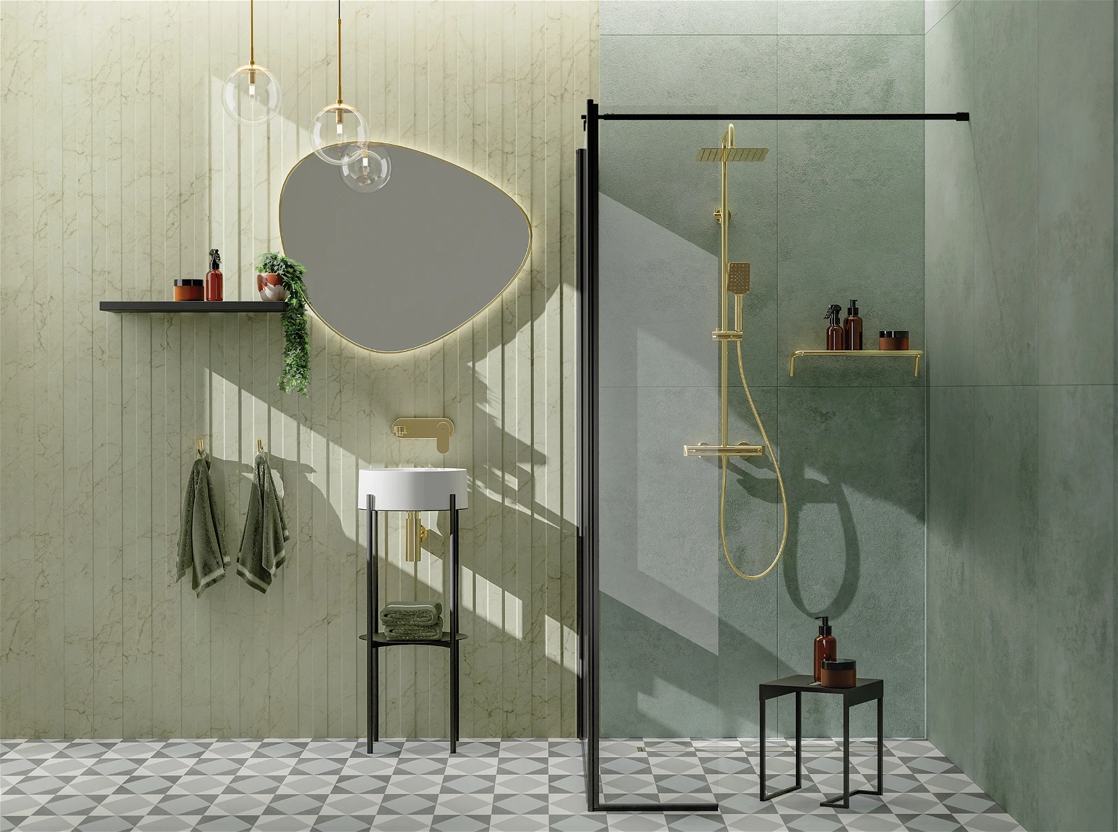 Złoty zestaw prysznicowy z baterią termostatyczną Deante- właściwości: