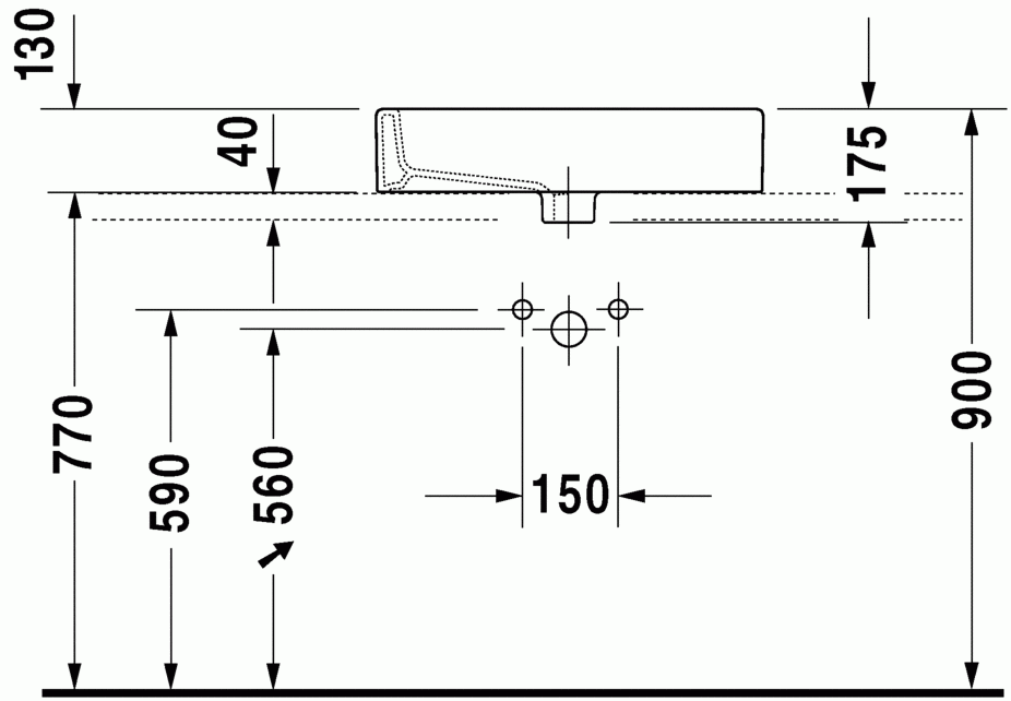 Umywalka stawiana z przelewem otwór na baterię Duravit Vero, 595 x 465 mm, 0452600000