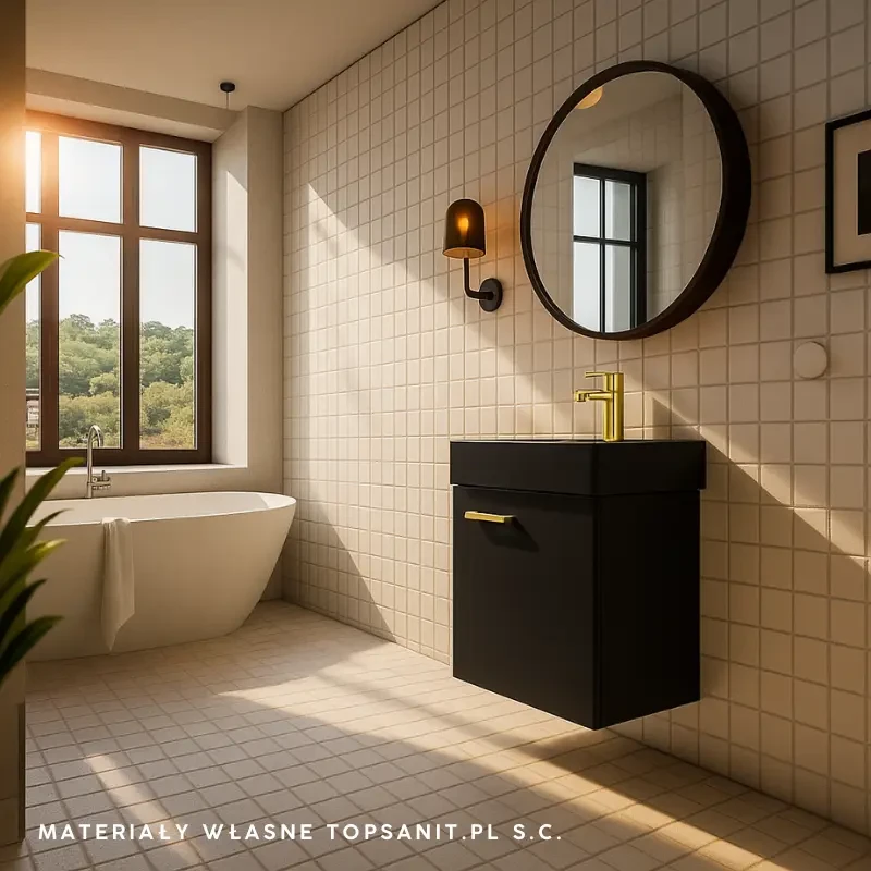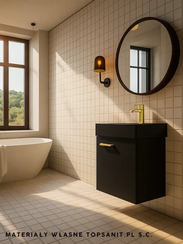 Uwaga! Przedmiotem sprzedaży jest szafka z umywalką Tiny 168300 czarny mat. Bateria widoczna na zdjęciach do zamówienia osobno.