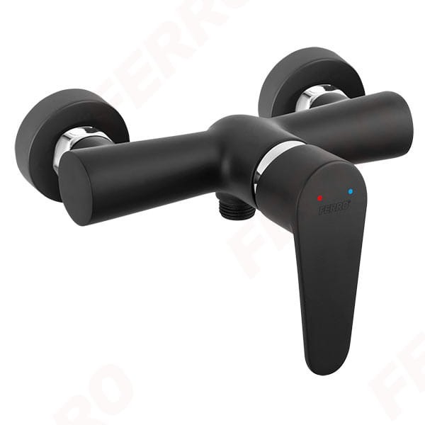 Bateria natryskowa ścienna, kolor czarny Ferro Algeo Black BAG7BL