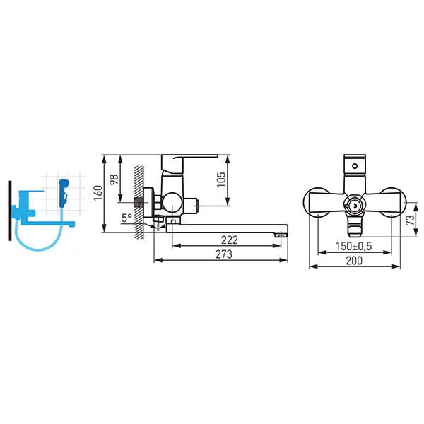 - przyłącze mimośrodowe G1/2 rozstaw 150 ± 20 mm