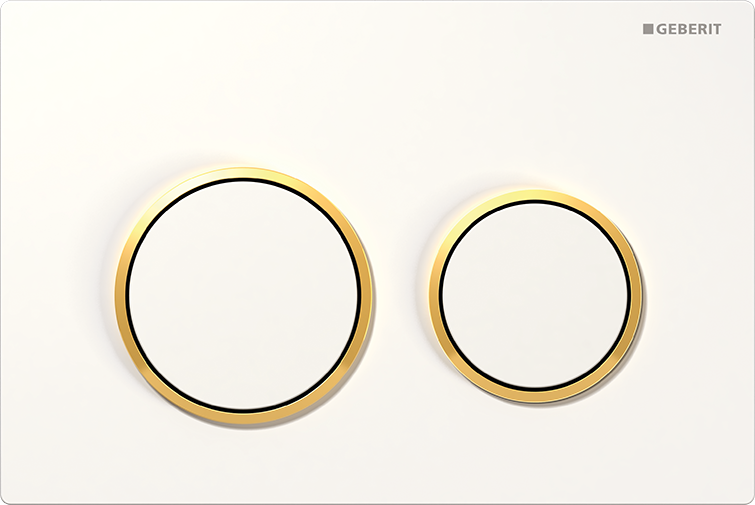 Cechy produktu - przycisk Geberit Omega 20 kolor biały/złoty/biały, do stelaży Omega 115.085.KK.1