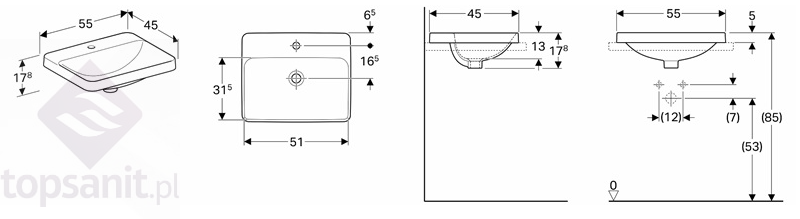 Geberit VariForm Umywalka wpuszczana w blat, prostokątna 55 cm, biały, 500.742.01.2 – cechy produktu: