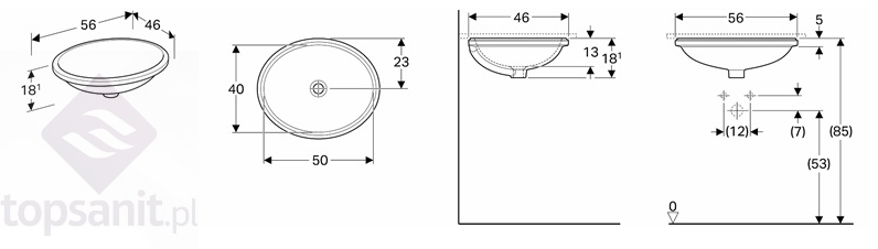 Geberit VariForm podblatowa, 50x40 cm, owalna, biały 500.754.01.2 – cechy produktu: