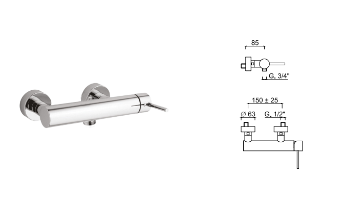 - Bateria natryskowa z mieszaczem,