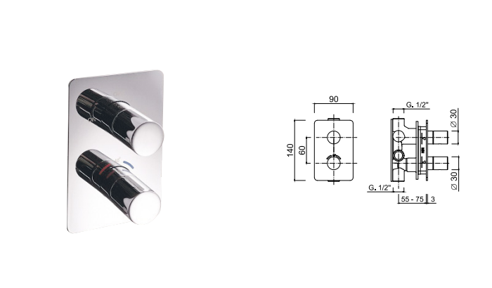 Giulini Giovanii Futuro Bateria natryskowa termostatyczna podtynkowa, 3 wyjścia, chrom, 8277