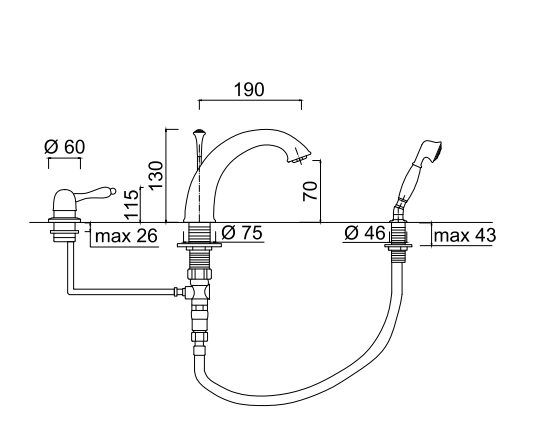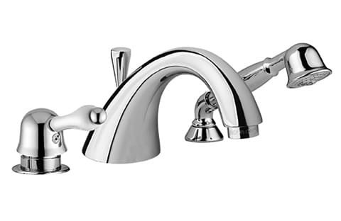 - bateria 3-otworowa: mieszacz wody, wylewka, rączka natryskowa,