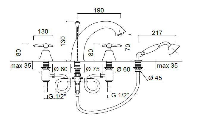 Giulini Giovanni Praga Bateria wannowa 4-otworowa chrom 7565- cechy produktu: