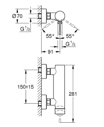 Bateria prysznicowa Grohe Essence 33636AL1 ścienna, kolor brushed hard graphite) - Cechy produktu