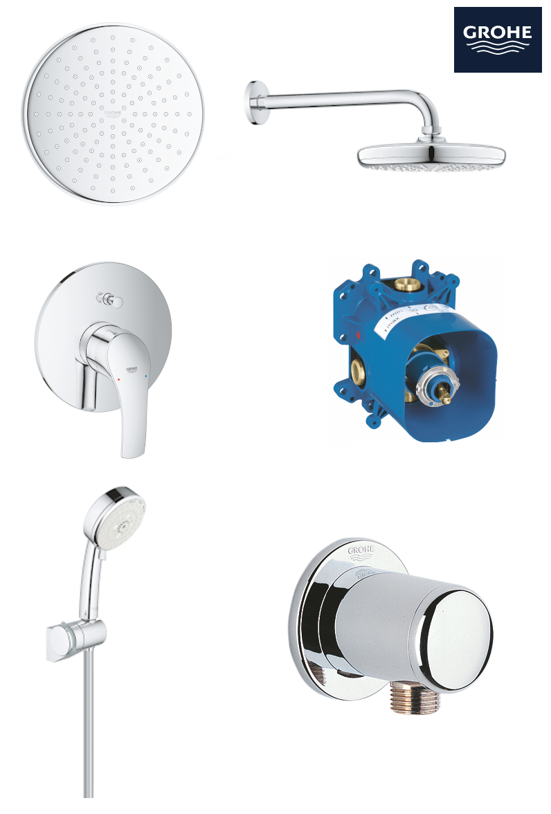 Cechy produktu - zestaw podtynkowy Grohe Eurosmart z deszczownicą 210mm, SET.19450002