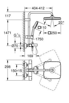 Zestaw natryskowy z termostatem Grohe Tempesta - wymiary: