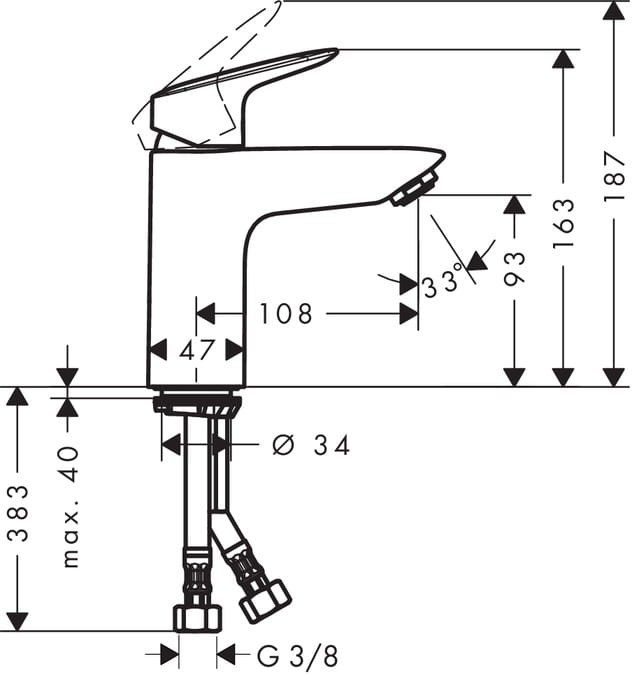 Bateria umywalkowa Hansgrohe LOGIS 100 z zaworem opływowym Push-Open, 71107000 - cechy produktu: