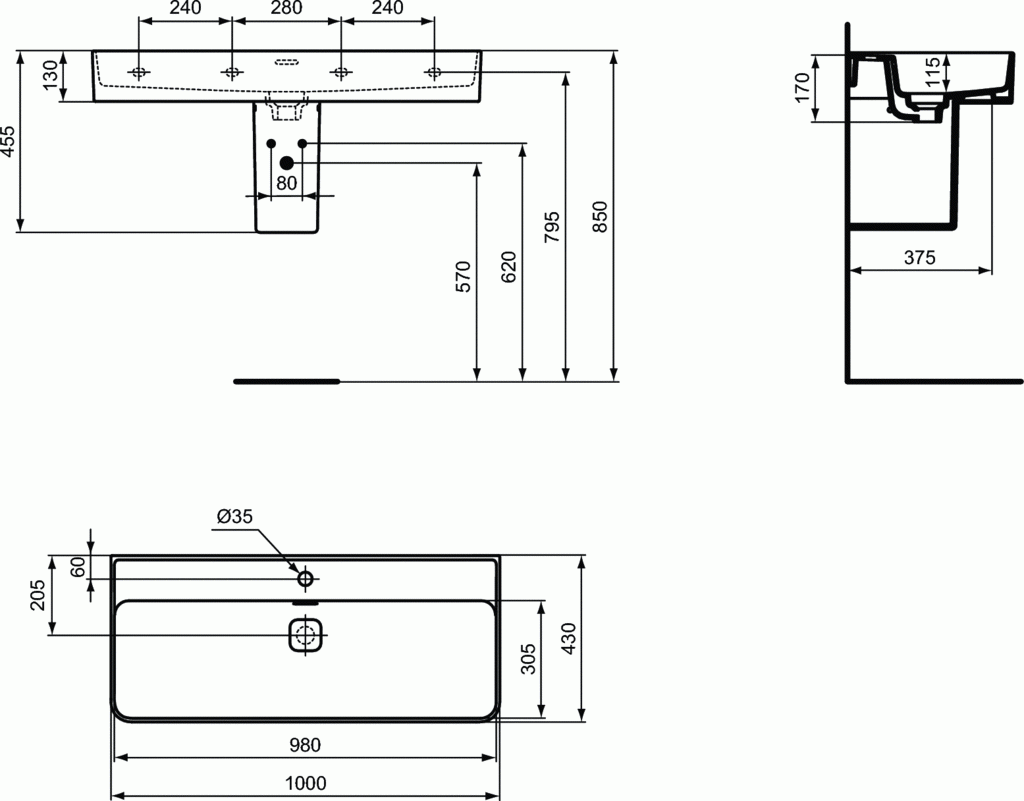 Cechy produktu - umywalka Ideal Standard Strada II 100 cm, z otworem na baterię, wisząca kolor biały T300201