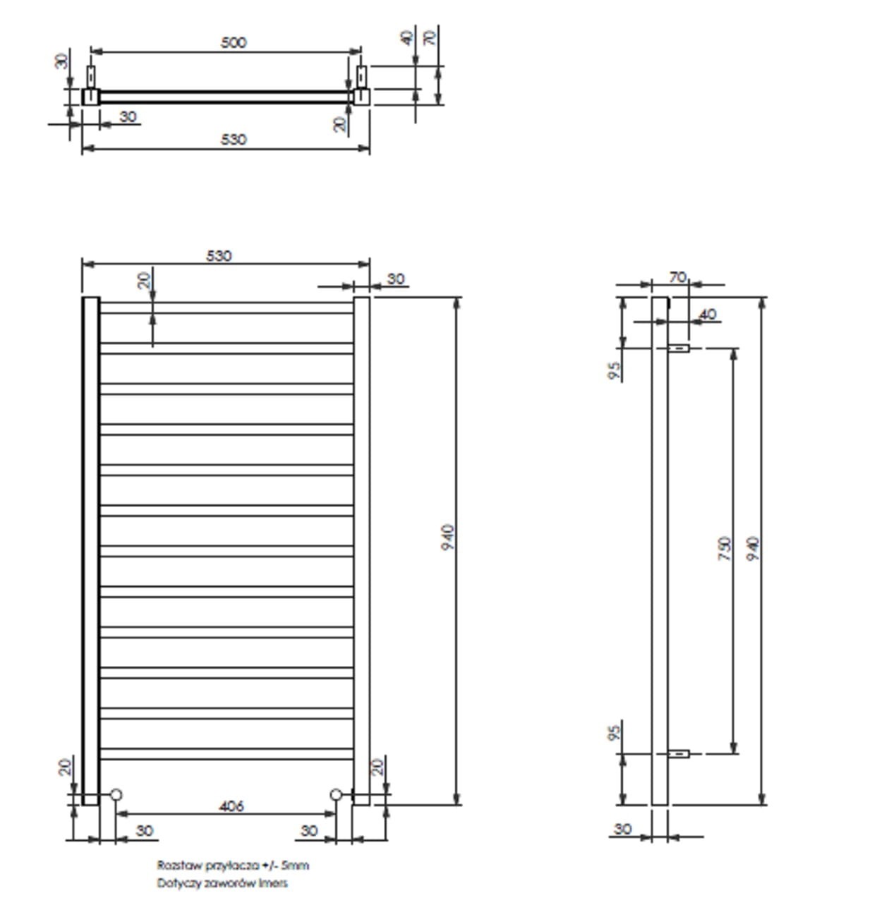 Imers Tell 5 grzejnik łazienkowy 530x940 moc 401W podłączenie dolne 1152