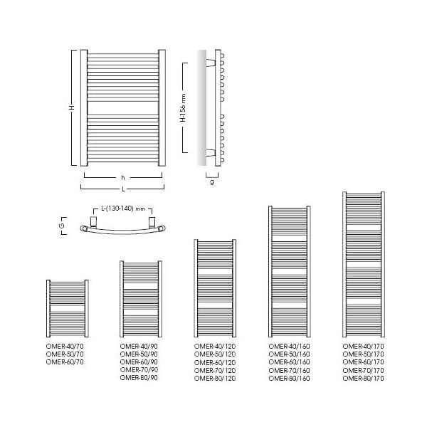 Grzejnik łazienkowy Instal Projekt OMEGA R podłączenie dolne, 360 W, OMER-40/90