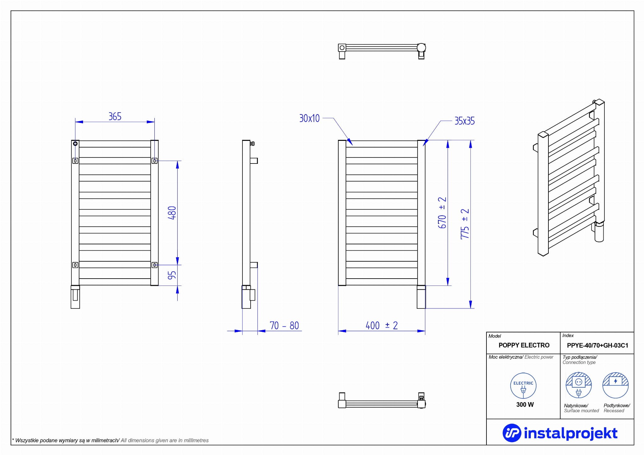 Oryginalna budowa grzejnika, profile o przekroju prostokątnym to nowoczesna wersja drabinki łazienkowej. Model świetnie sprawdzi się jako suszarka do ręczników i innych, codziennych materiałów które potrzebujemy szybko wysuszyć. Grzejnik nagrzewa się równomiernie i jest bezpieczny w dotyku. Poppy Electro to elektryczny grzejnik łazienkowy, który zużywa mało prądu - jest to możliwe dzięki innowacyjnej, wbudowanej grzałce Instal Projekt HOT2. Grzałka jest prosta w obsłudze i posiada najważniejsze funkcje - timer, tryb antyzamarzanie oraz sygnalizacja stanów alarrmowych.