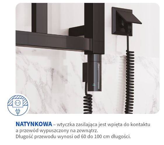Grzejnik elektryczny Instal Projekt Poppy Electro 40x70 cm czarny/black swan PPYE-40/70C75+GH-03C2 - cechy produktu: