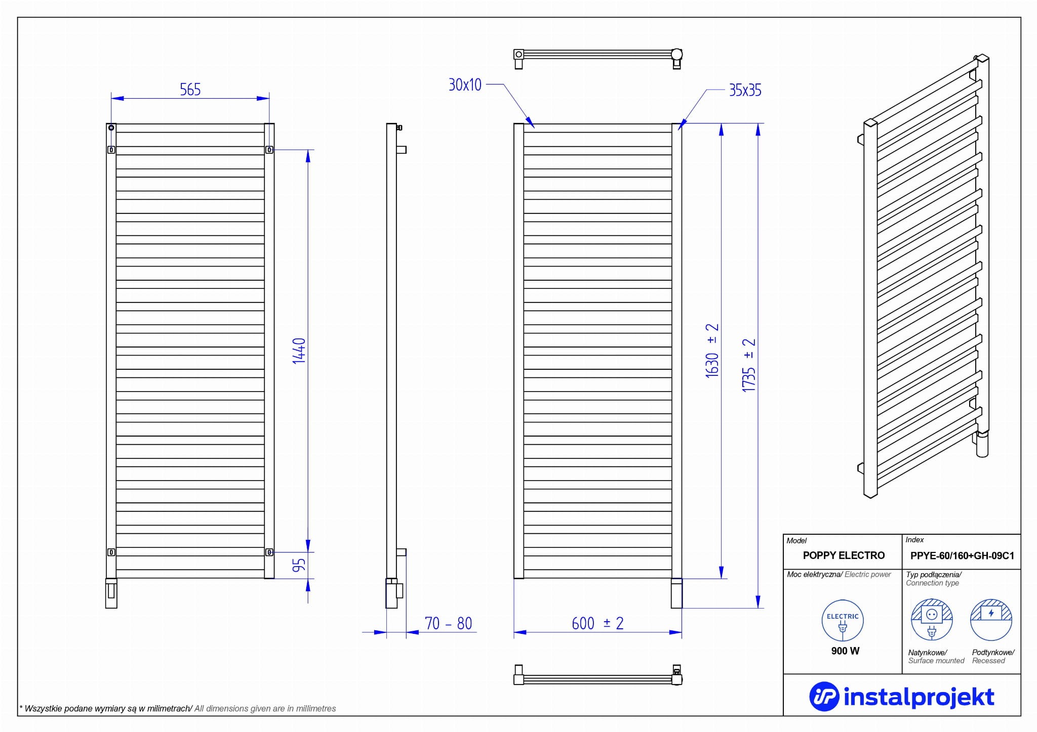 Oryginalna budowa grzejnika, profile o przekroju prostokątnym to nowoczesna wersja drabinki łazienkowej. Model świetnie sprawdzi się jako suszarka do ręczników i innych, codziennych materiałów które potrzebujemy szybko wysuszyć. Grzejnik nagrzewa się równomiernie i jest bezpieczny w dotyku. Poppy Electro to elektryczny grzejnik łazienkowy, który zużywa mało prądu - jest to możliwe dzięki innowacyjnej, wbudowanej grzałce Instal Projekt HOT2. Grzałka jest prosta w obsłudze i posiada najważniejsze funkcje - timer, tryb antyzamarzanie oraz sygnalizacja stanów alarrmowych.