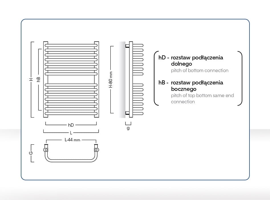 Grzejnik łazienkowy Instal Projekt STANDARD podłączenie boczne, 378 W, GŁ-40/70B