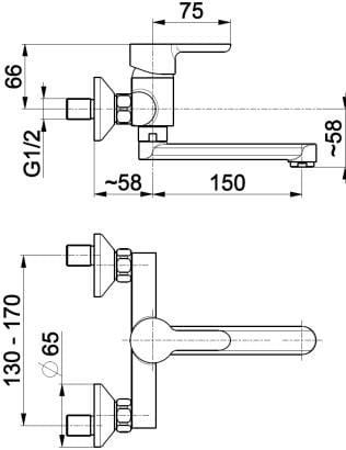 Bateria umywalkowa z długą wylewką KFA Armatura Granat ścienna, wylewka L-150mm, 5520-810-00
