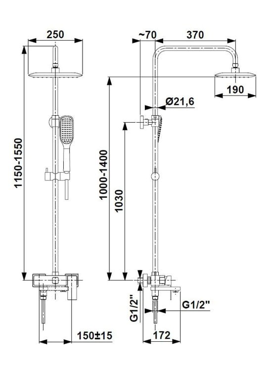 Zestaw prysznicowy natynkowy KFA Armatura Logon 5136-915-81 - wymiary: