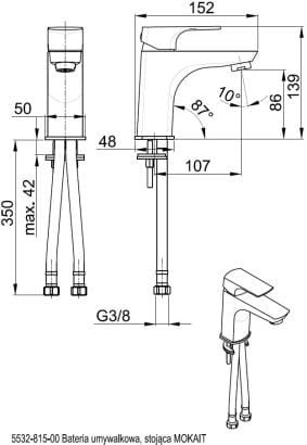 - w komplecie: przyłącza elastyczne M10 x 1/G3/8" (L=350 mm, 2 szt.),