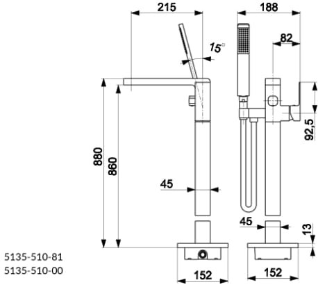 Bateria wolnostojąca KFA Logon chrom 5135-510-00 - wymiary