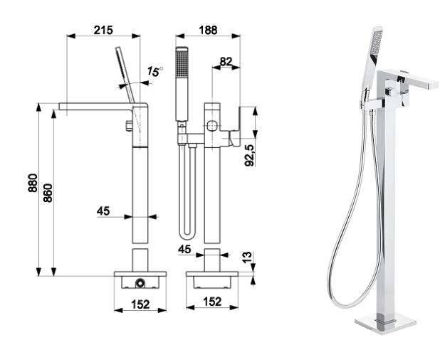 Wolnostojąca bateria do wanny KFA Logon Chrom co w zestawie: