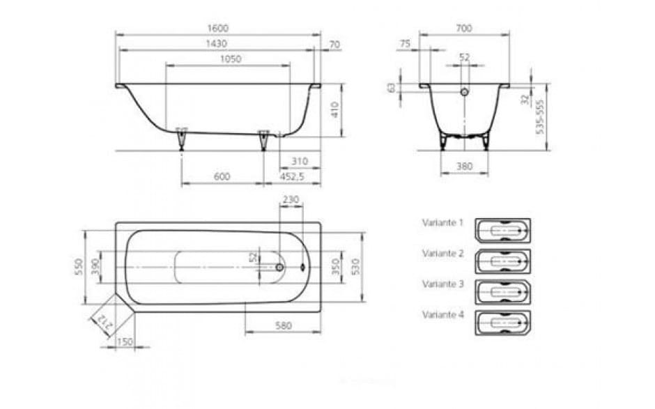 Wanny stalowa Kaldewei Saniform Plus 150x70 cm - do kompletowania z: