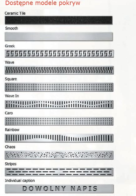 - 10 rodzajów wykończeń - możliwość wypełnienia płytką ( ceramik tile ) ,