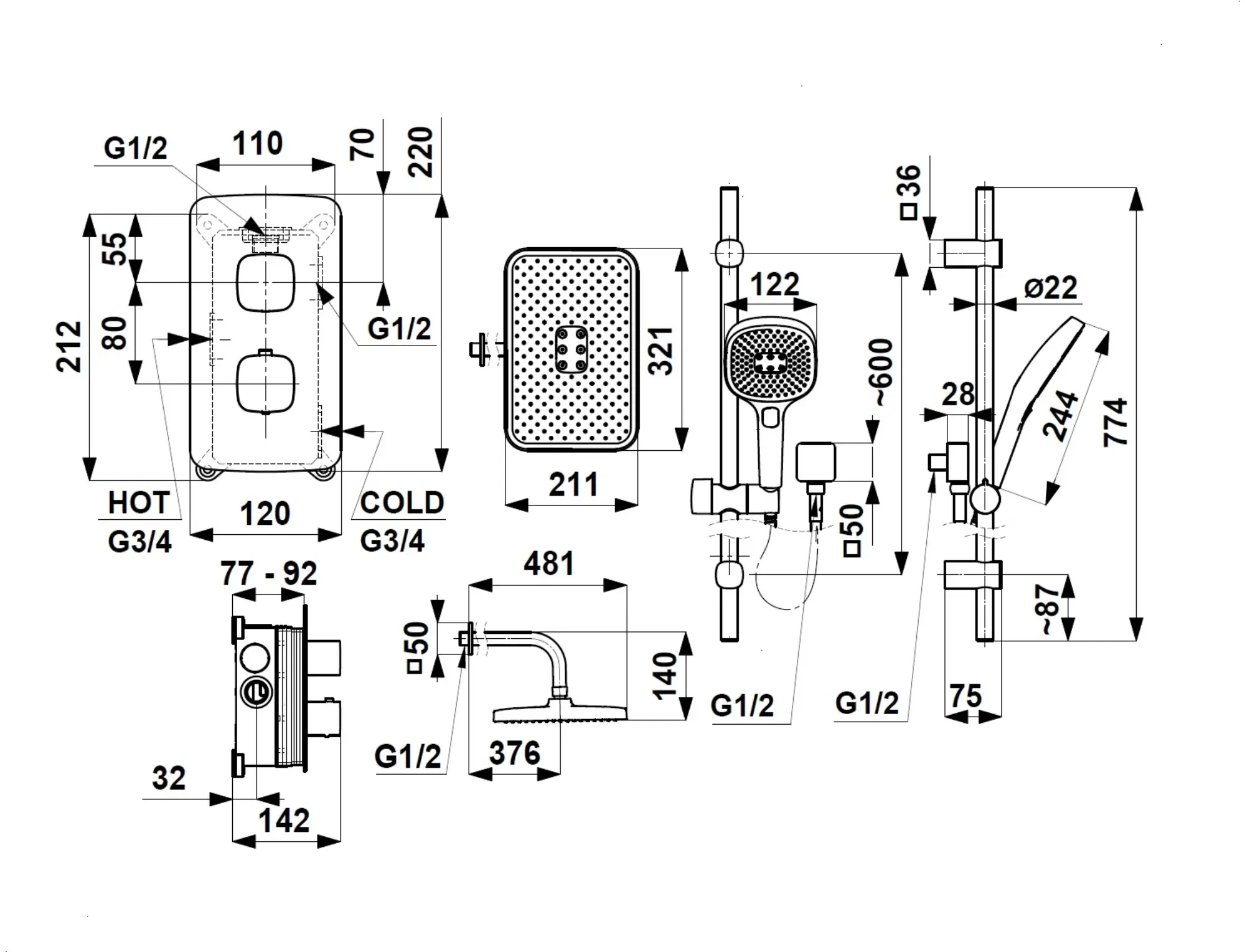 - wąż: 150 cm,