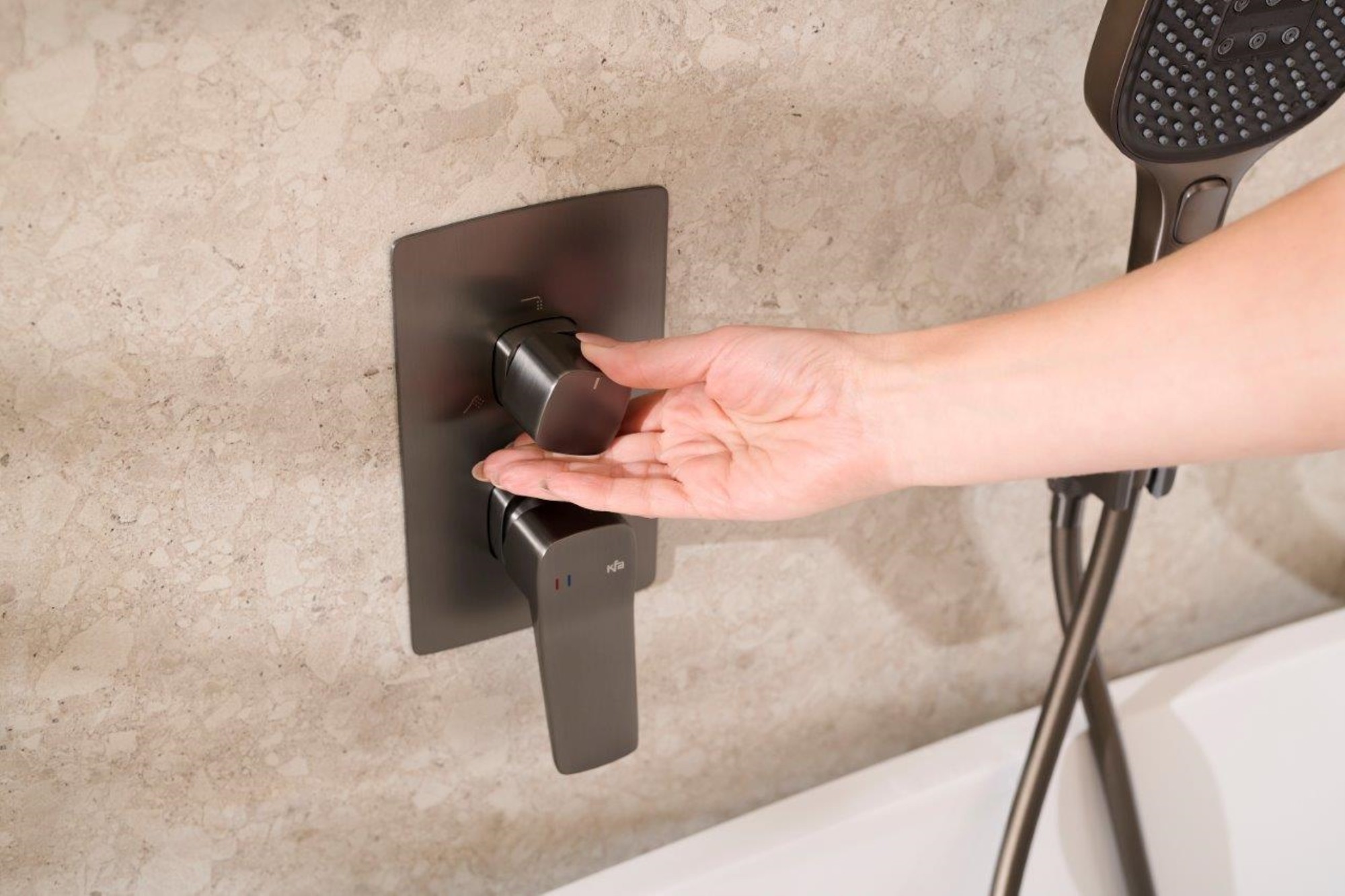 Zestaw natryskowy podtynkowy Kfa Malaga z drążkiem prysznicowym kolor grafit metaliczny PVD 4529-301-61 - cechy produktu: