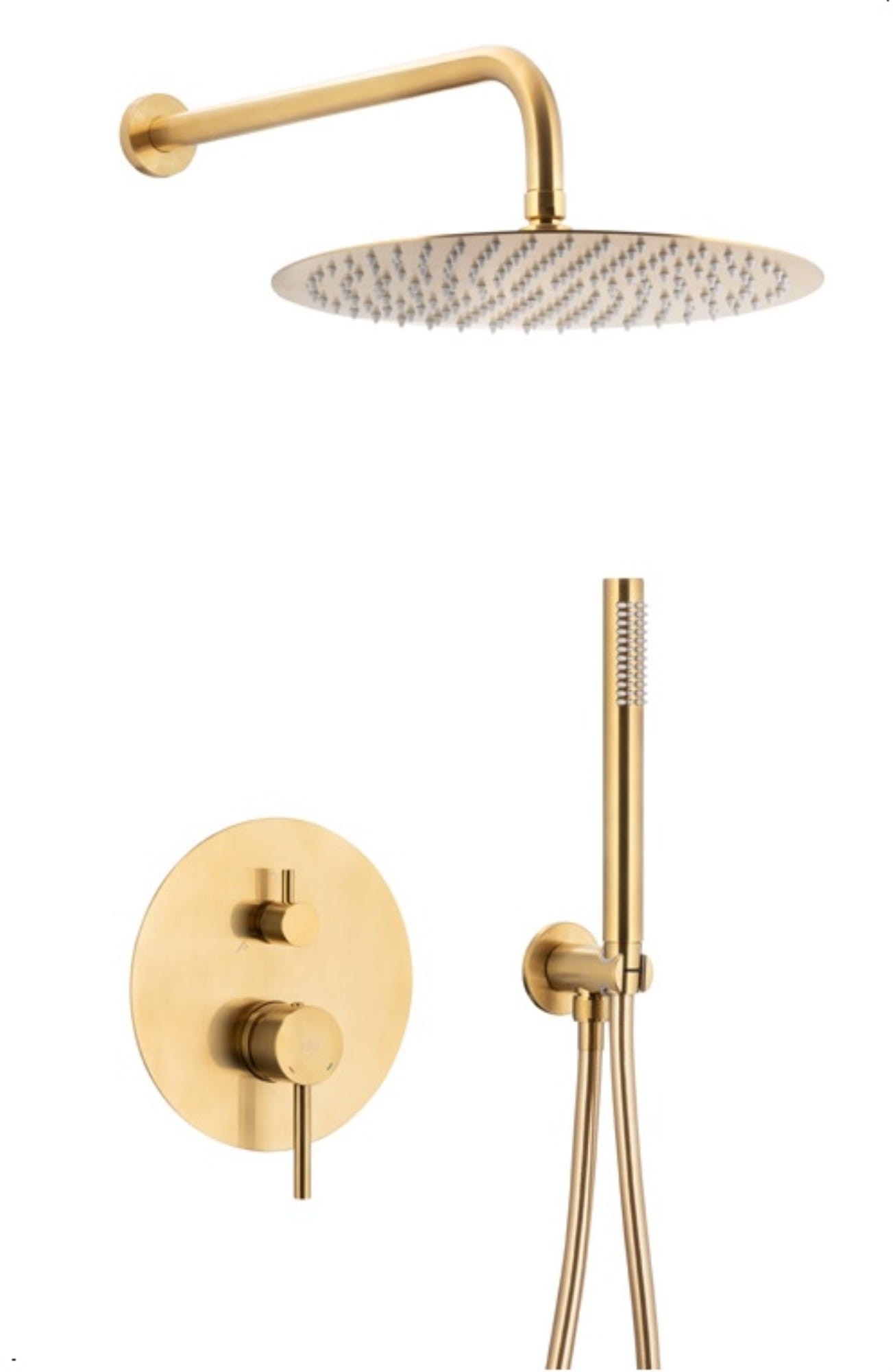 Kfa Armatura Moza zestaw natryskowy podtynkowy, deszczownica 30cm, kolor złoty szczotkowany 5039-501-31