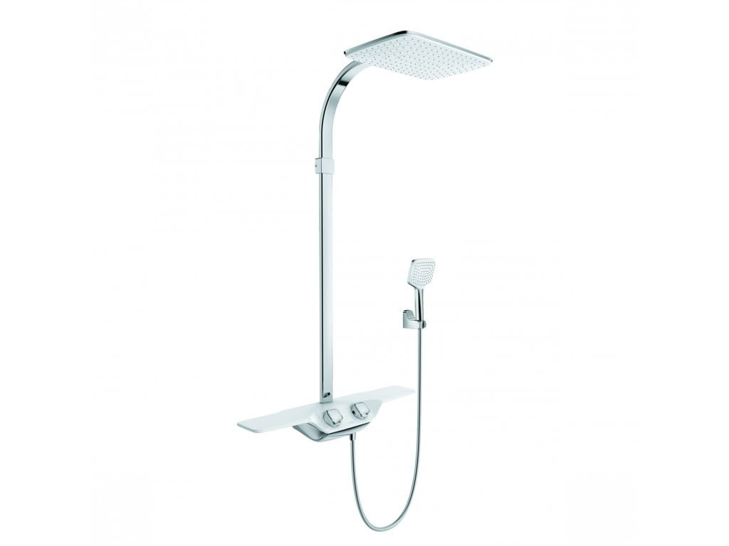 Zestaw termostatyczny z półką i deszczownicą Kludi Cockpit Discovery kolor biały/chrom 8020091-00 - cechy produktu: