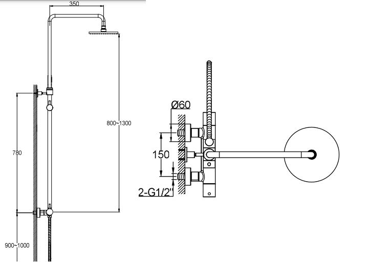 Termostatyczna kolumna natryskowa Kohlman Axel Gold QW273AGD- wymiary